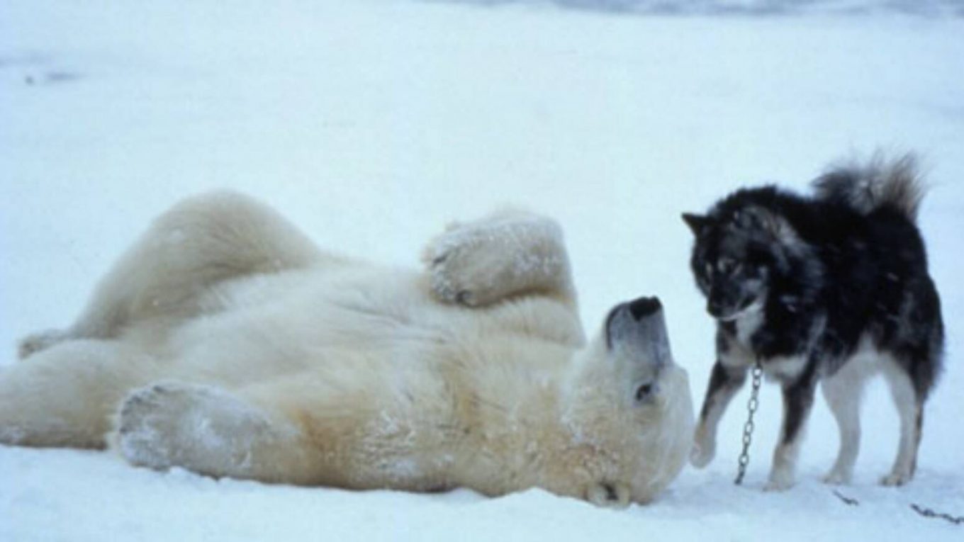 Wildlife photographer Norbert Rosing captured a polar bear playing with huskies