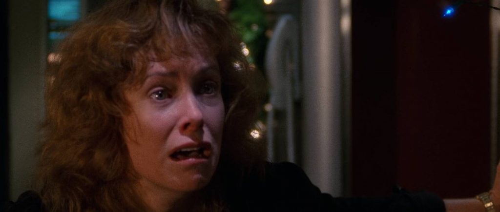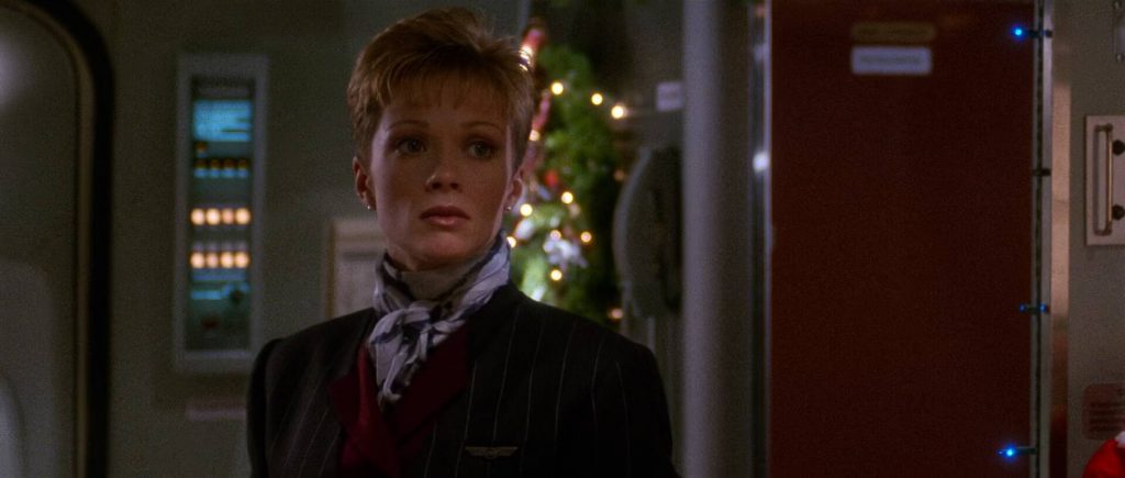 However, the film quickly curtails that potential. After take-off, Turbulence rapidly shuffles almost all the secondary characters out of the main arena and into a small, cramped room at the back of the plane, effectively out of the way. This narrative decision leaves the stage clear for Liotta’s to be villainous, essentially forcing him to terrorise the flight crew (Lauren Holly and Catherine Hicks) and, by extension, the audience, with little interference from the other passengers or crew. The early momentum, built by the character introductions, stalls.