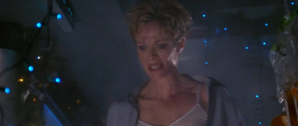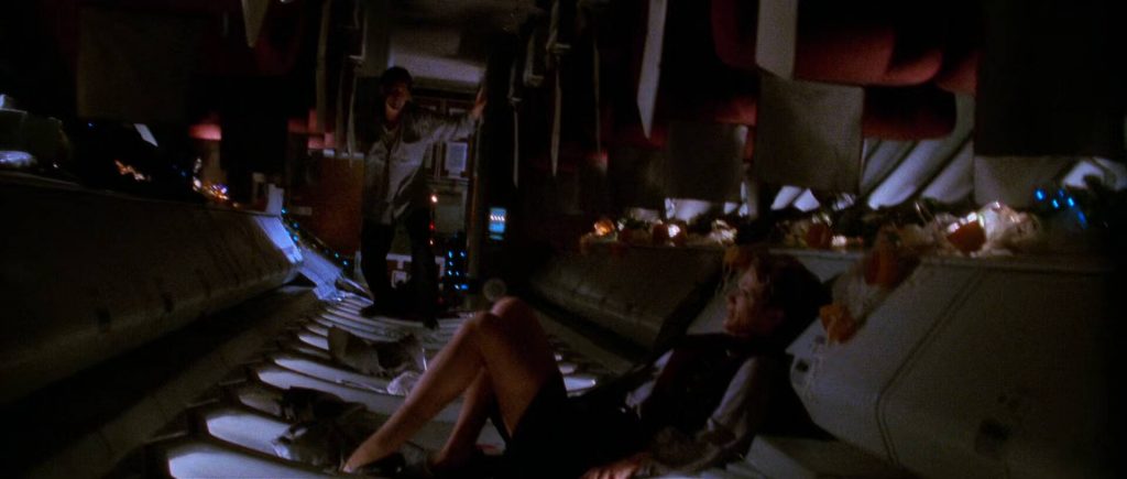 But then, once the immediate threat solidifies and the other characters are conveniently sidelined (either hidden or dispatched), the film largely becomes Holly’s perspective, reacting to Liotta’s crazed actions and the ground control chaos. The film doesn’t really have much else to realise upon after the main cinematic event, the stomach-churning 360-degree flip sequence. To be honest, that sequence, while undeniably fun for its time, yet feels poorly put together in retrospect. A second event, a collision with a parking structure looks better but does little to affect the storyline other than eye candy.